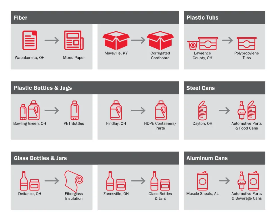 Most of Rumpke’s recycling is sold to household names that you might be familiar with such as Phoenix Plastics: Greif, Inc., Axium Packaging, Inc., Pratt Industries, Purecycle, Anchor Glass, ADS (Advanced Drainage Systems),and O-I (Owens-Illinois) just to name a few.
